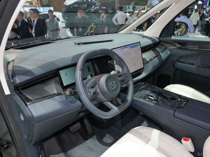 进入车内,内饰空间堪称移动的豪华会客厅,采用"涟漪式驾控"设计语言,15.05英寸悬浮中控屏与15.6英寸中央吸顶屏构成双智能交互系统。中控台采用Soft NAPPA全粒面头层真皮包裹,搭配12厘米厚度的7层座垫,提供如云朵般的乘坐体验。二排航空座椅配备3档强度、5种模式的SPA级按摩功能,配合超长腿托与仿形开关,可实现135°半躺姿势。独创的"空中大平层"概念通过7.4米纵向空间实现,二排座椅内侧扶手集成触控屏,可调节空调、娱乐系统及折叠小桌板,金属铰链开合阻尼经过精密调校,确保零异响操作。