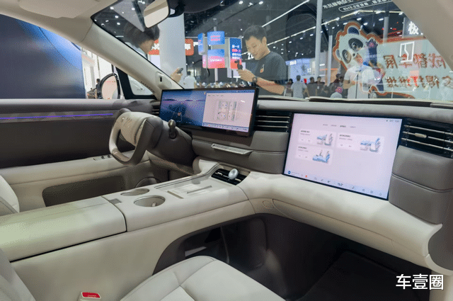 进入车内,就能发现全新智己LS6采用全新的布局设计,中控区域采用了一块27.1英寸5K屏,显示效果非常细腻,当然15.6英寸3K副驾娱乐屏也有安排,再加上车机高通8295P芯片的加持,操作很丝滑。而且配置上,新车还提供了11升智能冷暖冰箱、副驾零重力座椅、AR-HUD抬头显示、主动降噪、悬浮式音响系统等越级配置,诚意很足。