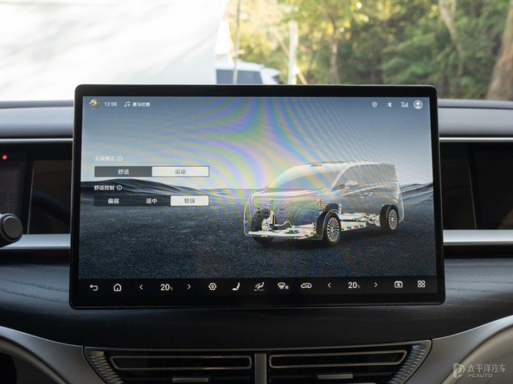 底盘方面,腾势D9至尊版采用前麦弗式后多连杆式独立悬架的形式,并配备云辇-C智能阻尼悬架,通过控制减振器电磁阀调节阻尼,在不同路况自动匹配不同阻尼,实现阻尼的无级自适应调节。以及全系搭载智能预瞄系统,其集成800W像素摄像头,实现5米范围检测,150毫秒实时响应,可提前感知井盖、减速带等20余种路面特征,主动调节底盘悬架,提升驾乘质感。