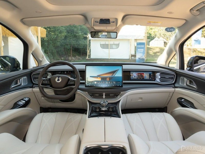 内饰方面,腾势D9至尊版同样延续现款车型设计,整体风格非常豪华,采用10.25英寸全液晶仪表、15.6英寸悬浮式中控大屏和10.25英寸副驾屏组合的三屏限显示。同时,新车还配备12.8英寸中排多媒体双头枕屏、5.2英寸冰箱智能屏、中排中央扶手多功能双液晶屏,驾驶HUD抬头显示和流媒体内后视镜,可以实现10屏互联,并且全车任意屏幕可单独联动、多屏共享。